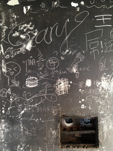 The team was comprised of French, German, and Hong Kong graffiti artists. One of the group had painted at the spot previously. He gave us a brief tour of the crumbling building, and showed us the prime spaces left to paint.