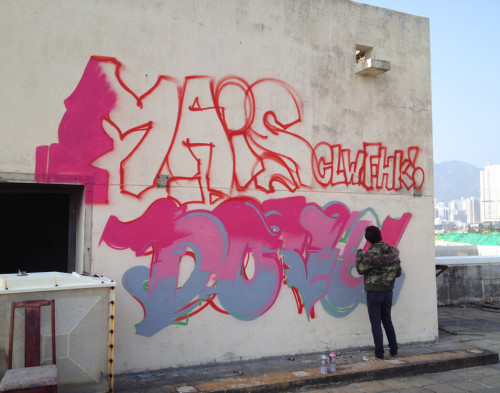 Last week a friend invited me to join a few graffiti artists in painting at the old Kai Tak airport in Kowloon Bay. Closed since 1998, the space is currently under redevelopment with only a handful of old buildings remaining. One of these structures was our target.