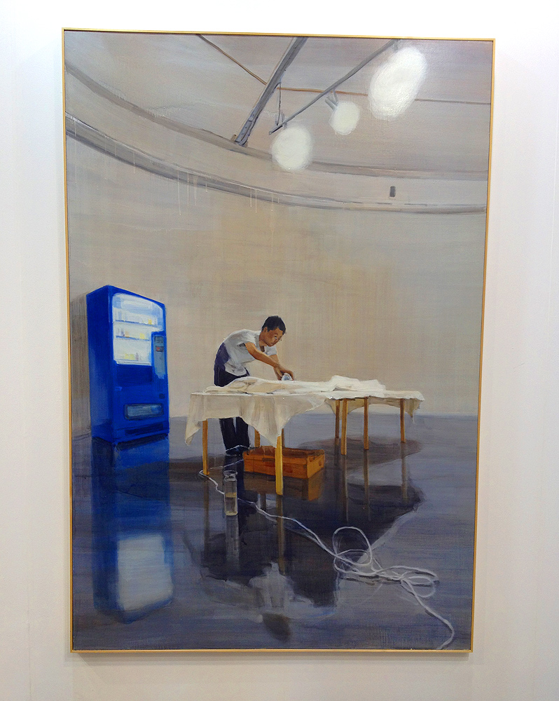 One immediate standout was the Edouard Malingue booth, which was filled with four works by Hangzhou artist Yuan Yuan. What caught our attention was both his subject matter and his unique style.