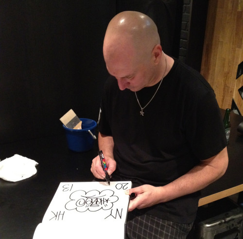 HAZE never forgot his roots. After the live painting demonstration he paused to place his tag in someone’s ‘black book’.