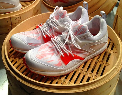 The launch at JUICE in Causeway Bay featured the sneakers displayed in bamboo steaming baskets branded with the Puma logo.