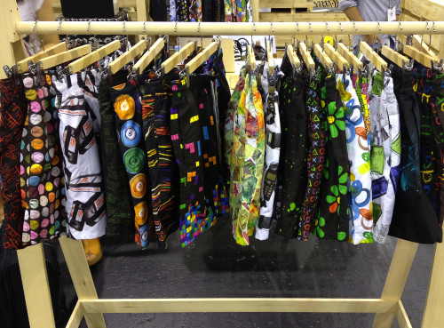 In addition to a contemporary take on patterns that included 80’s and 90’s motifs, the brand also had an interesting wooden display.