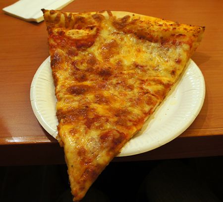 A slice of Paisano’s pizza is indeed huge, even by New York standards. I’ve tried to photograph it, but it’s impossible to capture the scale.