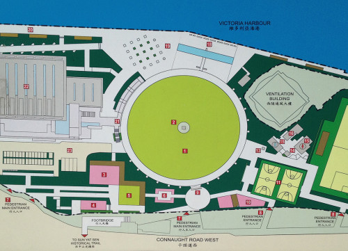 The main entrance is at the intersection of Eastern Street and Connaught Road West, in Sai Ying Pun.