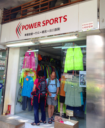 There are two clusters of these stores, one along Tai Po Road in Prince Edward, and the other on Nam Cheong Street in Sham Shui Po, close to Ap Liu Street. (Wanchai’s sample stores also provide some hiking gear, although they don’t offer quite as extensive a selection.)