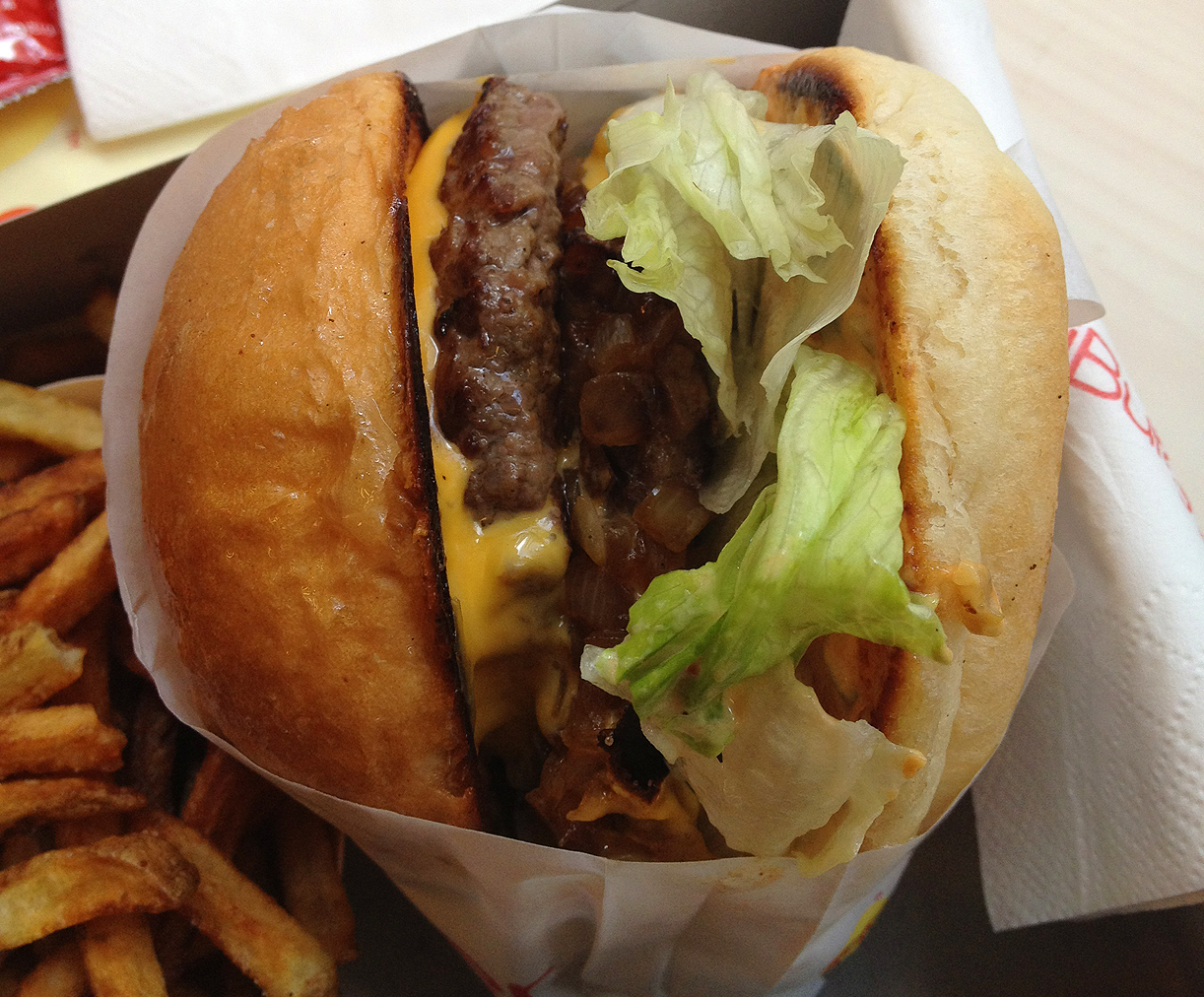 The first thing you notice about a CaliBurger is that it’s damn good looking! The second thing you notice, especially if you order their signature CaliDouble, is that there’s a lot of meat compared to other fast-food joints. What’s the third thing?
